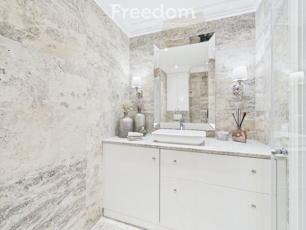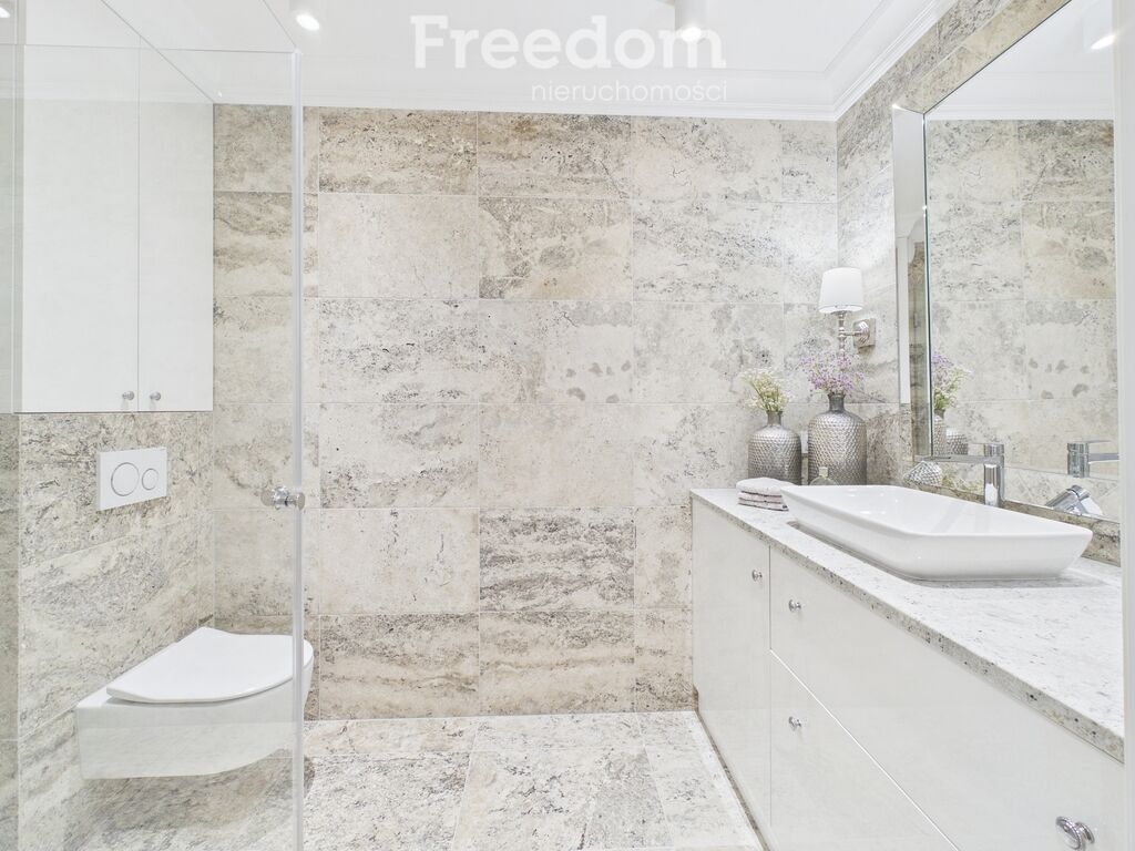 Łazienka: naturalny materiał (trawertyn) nadaje charakteru, a