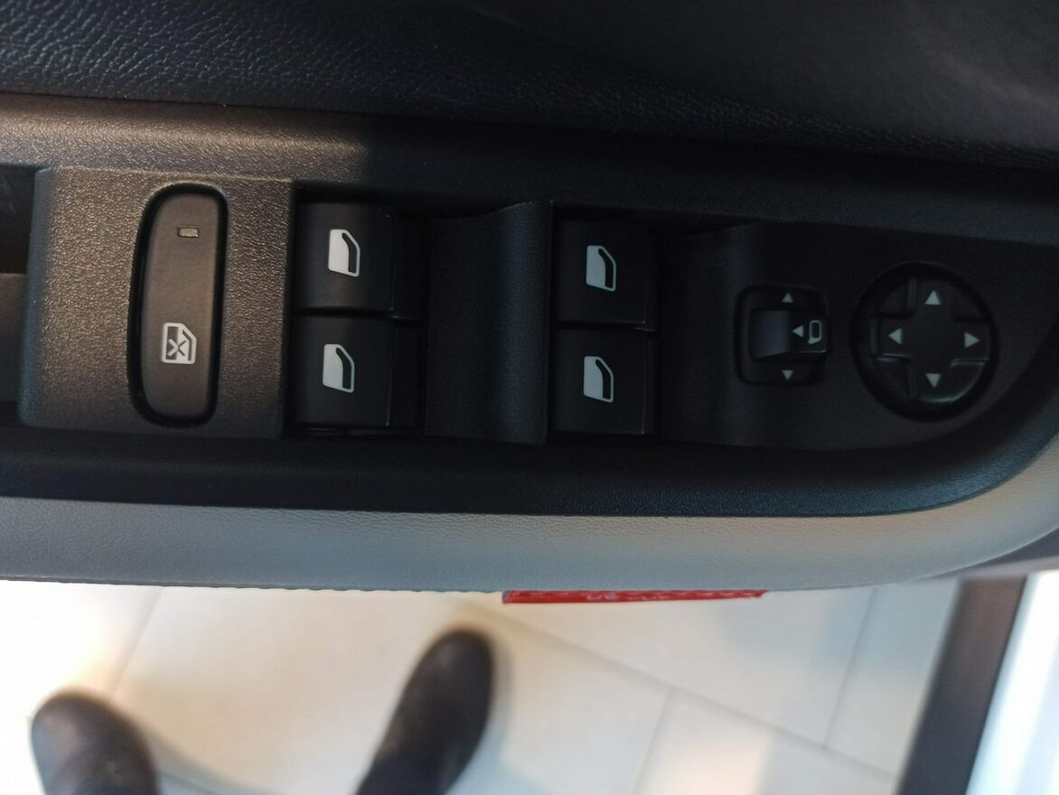 • Kierownica z obszyciem ze sztucznej skóry ze sterowaniem radia i tempomatu/ogranicznika prędkości, z dekorem w kolorze czarnym błyszczącym z chromowanymi akcentami
