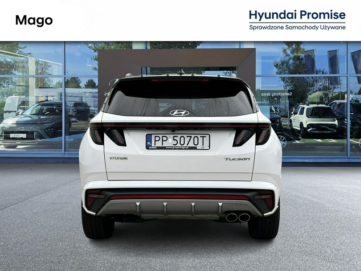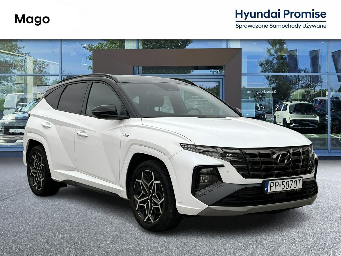 Hyundai Tucson IV 2024 1.6 T-GDI 7DCT 48V 2WD (150KM) Atlas White. Gotowy do odbioru!Autoryzowany Dealer Hyundai MAGO z Piły zachęca do zakupu używanego Hyundaia Tucsona IV przed liftem z silnikiem 1.6 T-GDI Automat w wersji N Line z 2024 roku.