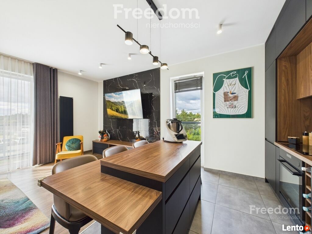 - jasnego, otwartego salonu połączonego z kuchnią – idealnego do
