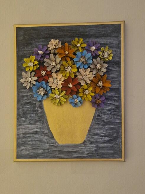 Akwarela na płótnie plus kwiaty z szyszek. Obraz poglądowe, możliwość indywidualnego doboru wielkości i kolorów. Cena ...