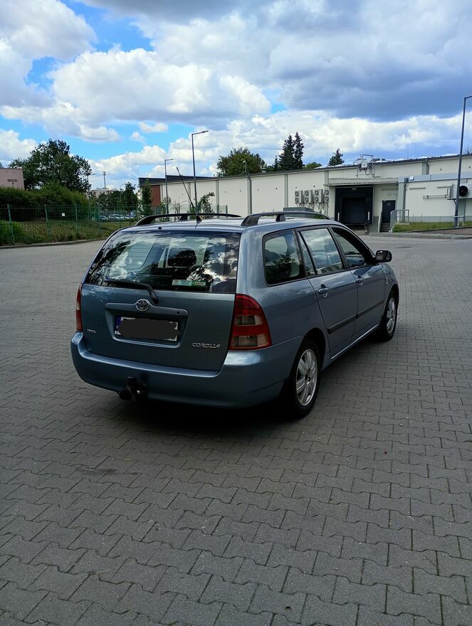 Do sprzedania Toyota Corolla 2003r Kombi [SALON POLSKA] z klimatyzacja. Silnik 1.6 benzyna, samochód sprawny mechanicznie w dobrym stanie zrobione hamulce przód I tył,środek zadbany przegląd 23,07,2026 OC opłacone 2 komplety kluczy centralny z pilota 2 piloty sprawne + serwisowy Wyposażenie,HakKlimatyzacja sprawna
